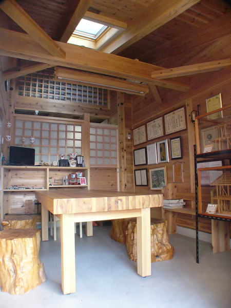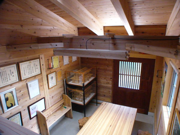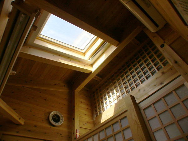 榛名山倉渕の杉材にこだわり、葉枯らしした材を全ての部位に使い、アフタイト約200setを用いて木材を接合しています。しかも、多くのアフタイトを使用したにもかかわらず見苦しい金具問題を一つも起こしていません。つまり、金具の存在感を消しつつ、金具を使っていると言う、感覚をまったく感じさせない、自由な発想的な木組意匠を可能にし、さらに、耐震性や強度の高い造りを導いています。