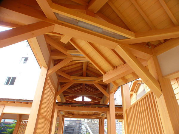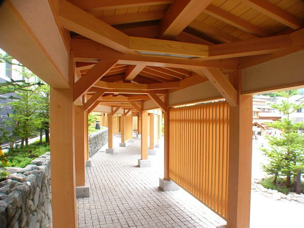 回廊屋根(ヒバ材)