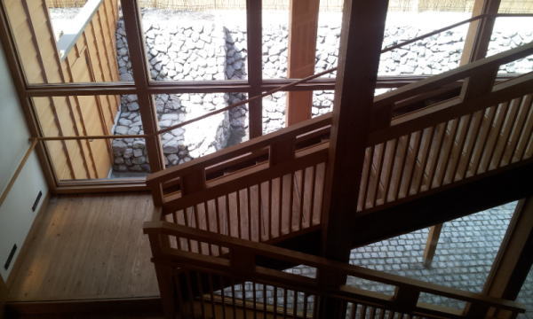 上部回廊よりトイレ棟アプローチ