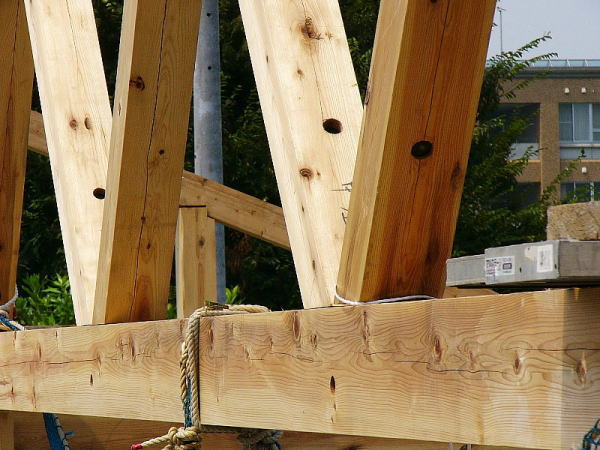 組み付け中の梁