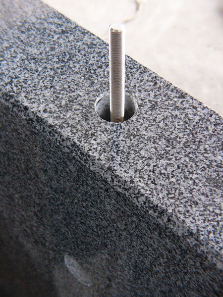 ステンレス ピンと礎石の花崗岩 資料写真(クリックすると拡大します。)