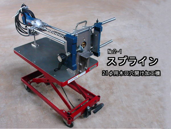 アフタイトを組み込む柱・梁等に穴を開ける専用の加工械です。市販ドリルを使い、簡単に曲がらず、真っ直ぐに穴開けが行えます。機械には、スプラインとハンドラインの二機種あり使用頻度や用途により、機種を選定いただけます。また、その機械は、リースと販売があり用途により御利用下さいませ。