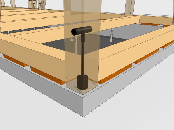 木材製品は㍉単位に削り加工されているため、削り加工は致しません。加工木材の角は傷付きやすくデリケートのため面取りを行い、その後、墨付け(加工するためのマークや寸法取の基準線入れ)は、エンピツで行います。その基線に従い木材を手加工します。丸ノコ・角ノミ・ドリル等の電動工具と手鑿・手鋸を使いこなし加工を施します。また、アフタイトを入れ込む穴は、当社オリジナルの専用穴開け加工機を使い芯ズレの少ない360㍉の深い穴開けを可能にして、仕口の加工も単純化し、簡素で組立易く出来ています。