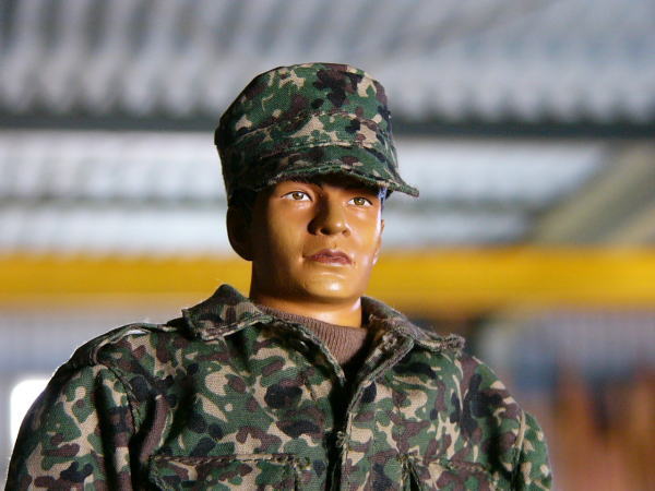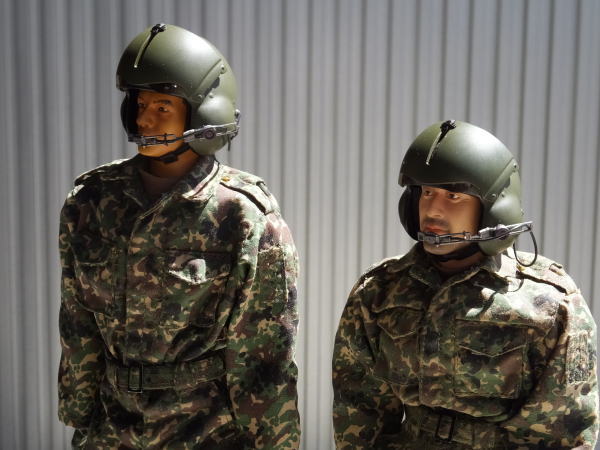 (18)陸上自衛隊が監修した1/6フィギュア(各自隊員名付き)を配置、駐機中の様子や整備士が搭乗するジオラマを完全再現。エンジンカバ-やベルトカバ-は胴体フレ-ムに合せ、実機写真から型を製作しFEP樹脂でかたどり整形。着陸灯は、LED懐中電灯を旋盤加工製作。