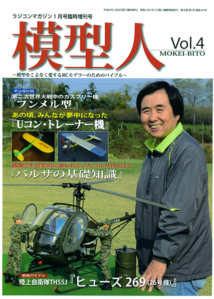 6年もの歳月をかけて完成させたRCヘリ(TH55J ヒューズ269)と私が、平成24年12月8日発行の「模型人」1月号の表紙に載りました。