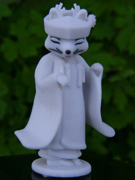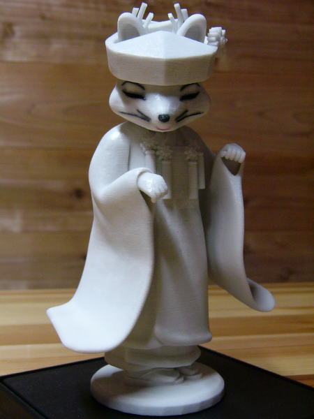 きつねの嫁入りのメインキャラクター「つばき姫」のフィギュア製作もしています。 CGで等身大の「つばき姫」を描き縮尺、立体造形プリンターで忠実に再現、材質は、硬質石膏で完成までに一体3時間懸かります。ぜひ、手にとってじっくり見てください、精密さや美しさに驚くはずです。 50体限定(通し番号付き)